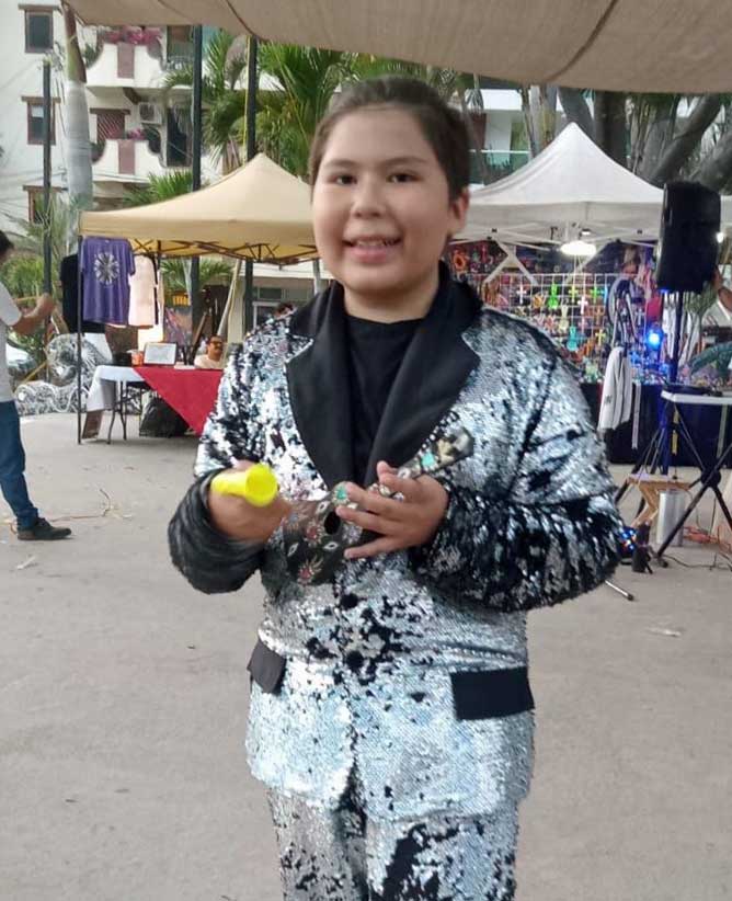 Angel Gerardo Covarrubias Cabrera, known by his stage name Angeloo, is an exceptional young singer from Puerto Vallarta whose passion for music began at age five. Inspired by the musical world of Fortnite, he taught himself to sing “Love Scenario” by iKon in Korean, marking the start of his artistic journey.