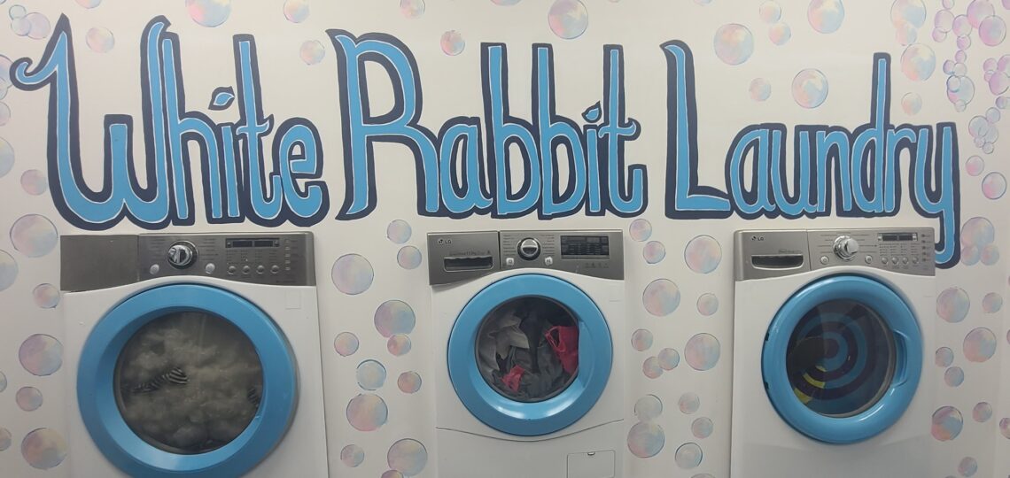 Patrice and I stood across the street and looked over at the brightly lit ‘White Rabbit Laundry.’ The address was correct – 701 Morelos, and I knew White Rabbit Lie was the proper name of the bar, so they had to be connected, but my brain was thrown off by the incongruity of it all.