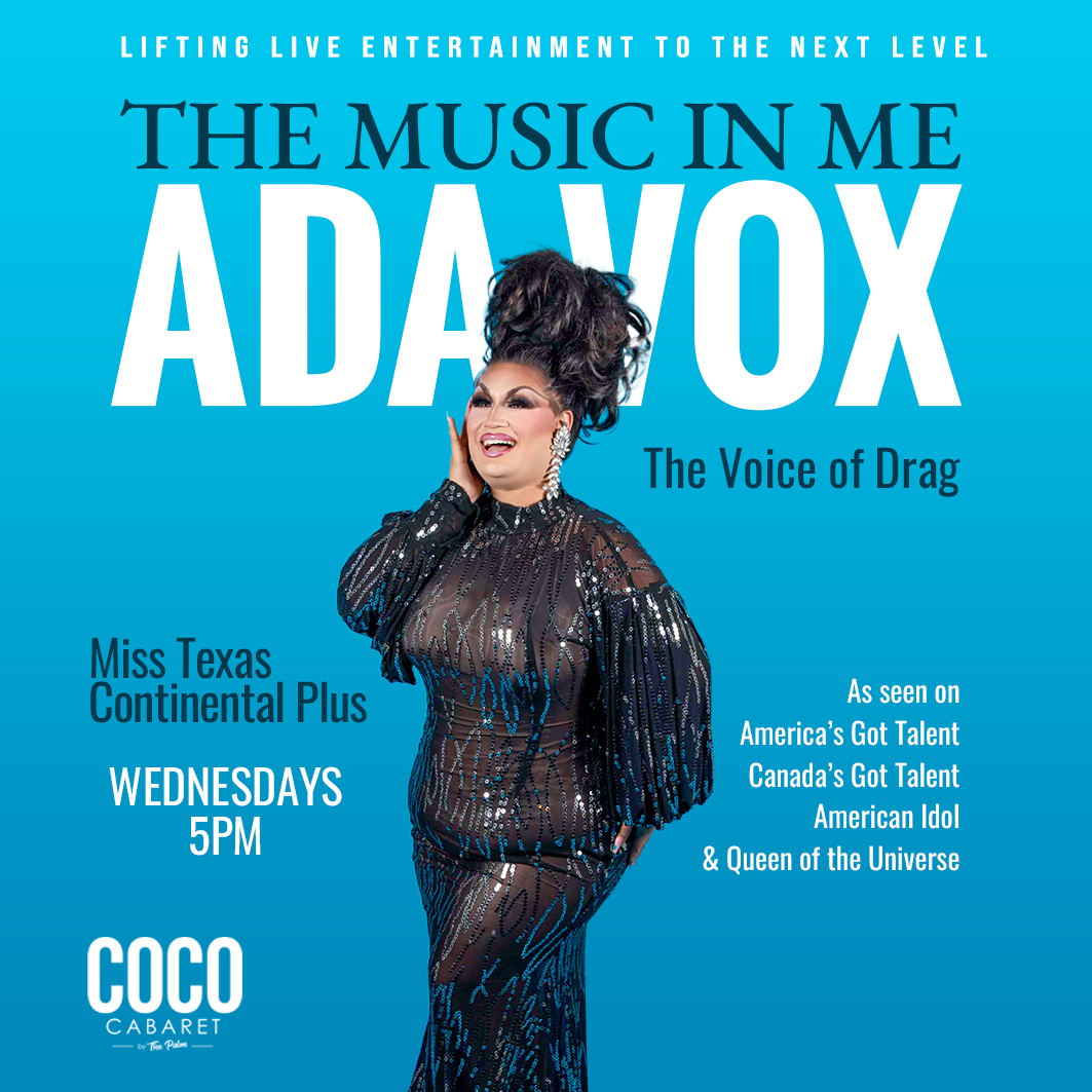 Ada Vox, the diva known as “The Voice of Drag”, is bringing her rafter shaking voice & masterful musical storytelling back to the Coco Cabaret!