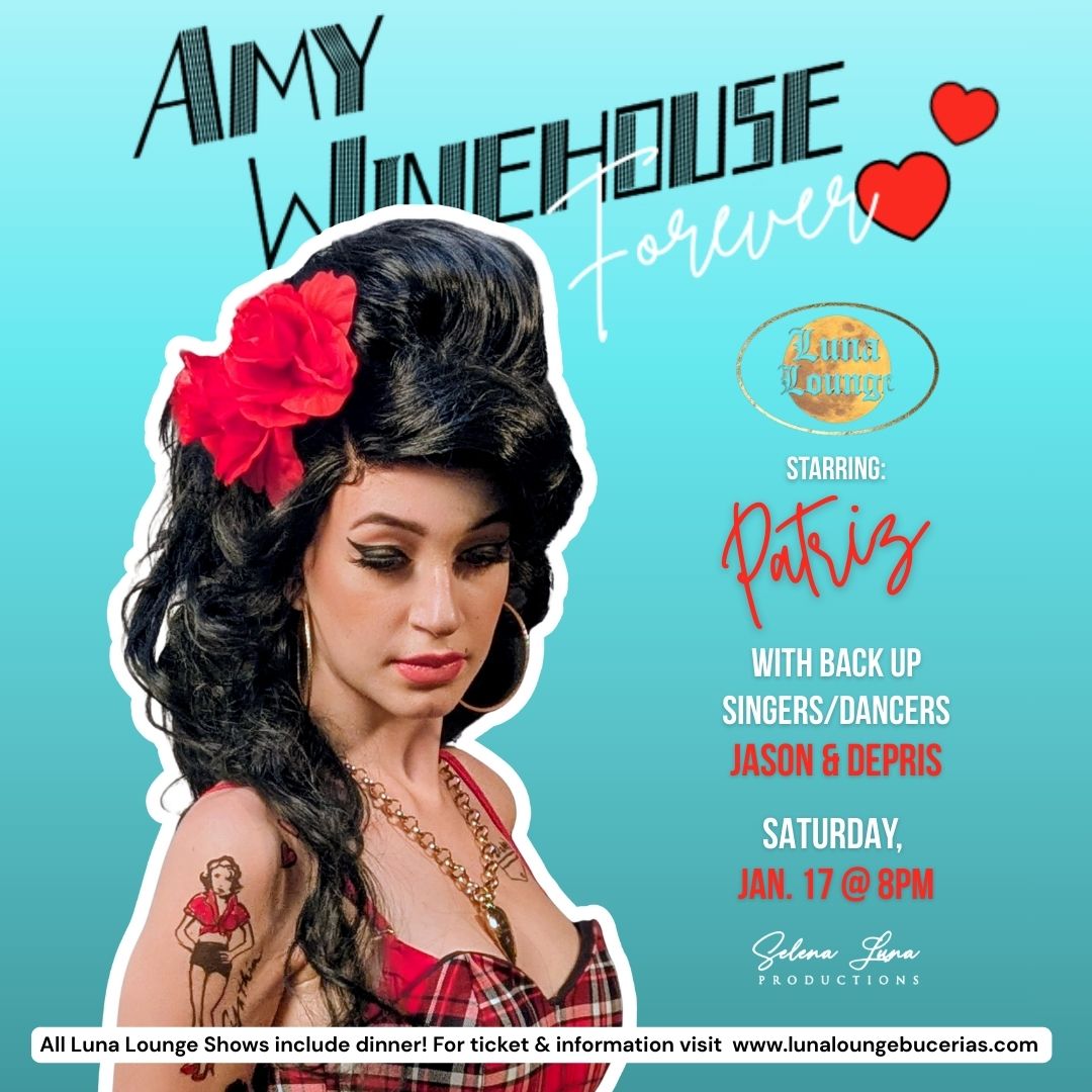 Enjoy the incredible voice and playful energy of Patriz—the 20-year-old soulful jazz siren. (Same age as Amy Winehouse was when she released her first album). Patriz, a Canadian girl who moved to PV from Vancouver got her start right here in Puerto Vallarta when she was just 16, and shares an uncanny resemblance to Amy, She doesn’t just sing the songs; her voice channels the smoke, the grit, and the jazz-soaked raw emotion of Amy, all delivered with a mesmerizing, original edge. Patriz has spent a year forging her natural soprano into Amy’s signature mezzo-alto velvet and grit, achieving a sound that is both hauntingly familiar and powerfully her own. We celebrate the cheekiness, the venom, and the glorious theatricality Amy poured into every lyric.