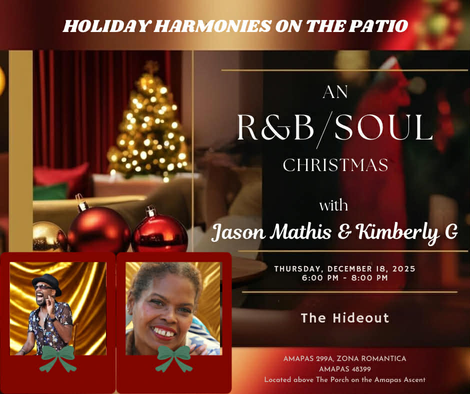 Join us for An R&B/Soul Christmas with the dynamic duo Jason Mathis & Kimberly G—live on the patio. Holiday favorites get a smooth makeover—wrapped in velvet vocals, deep grooves, and soulful vibes.