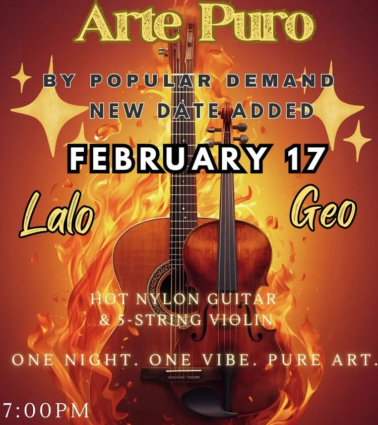 Luna Rumba Productions proudly presents Arte Puro, an electrifying live concert experience featuring Geo & Lalo, a world-class guitar and violin duo redefining instrumental performance.