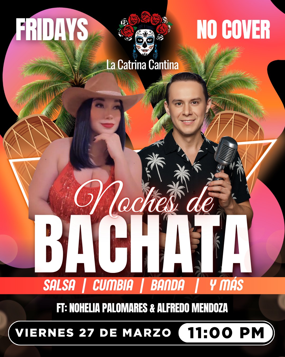 Friday starting at 11 PM, join us for a night of dancing with Nohelia Palomares and Alfredo Mendoza. 💃🎶