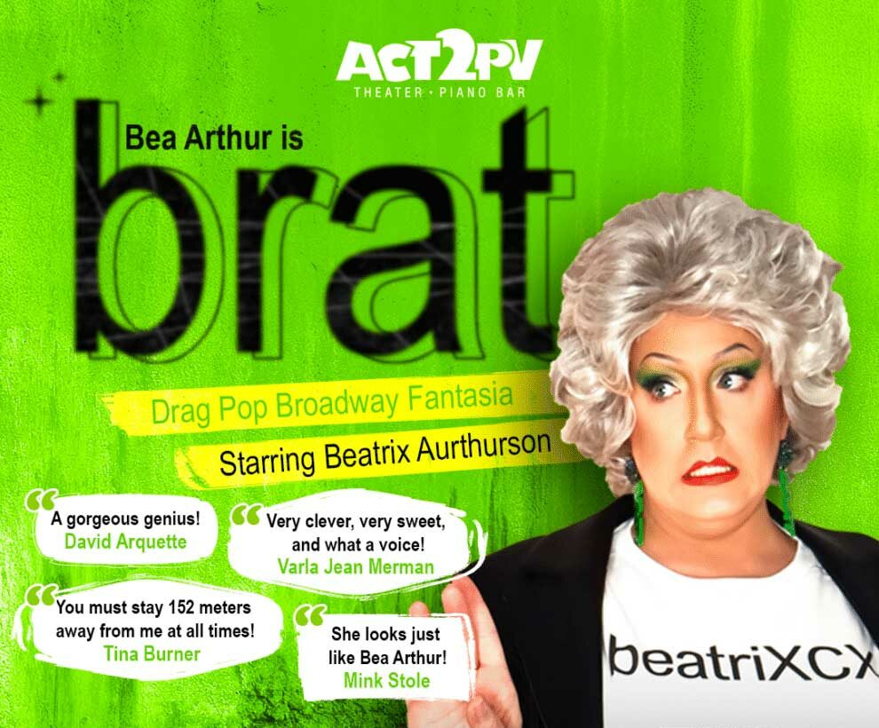 What happens when you cross Tony and Emmy Award winner Bea Arthur with Grammy Award Winner Charli XCC? From the mind of the world’s premiere Bea Arthur impersonator, Jason B. Schmidt – the answer is “BeatriXCX” in her new show Bea Arthur is Brat.