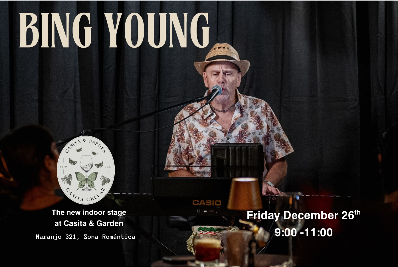 The Cellar is our new listening room located inside Casita & Garden, offering a chance to be up close and personal with our Artists. We offer the full drink and food menu to enjoy while you feel like every song is being played just for you!! You can make a reservation for best seating by calling or via WhatsApp to 322 405 0328 after 3pm.
