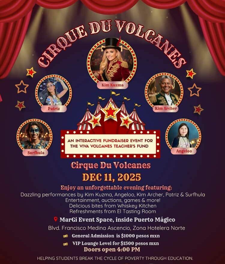 On December 11th, 2025, enjoy Cirque Du Volcanes, a night full of art, music, and fun in support of the Viva Volcanes Teacher’s Fund.