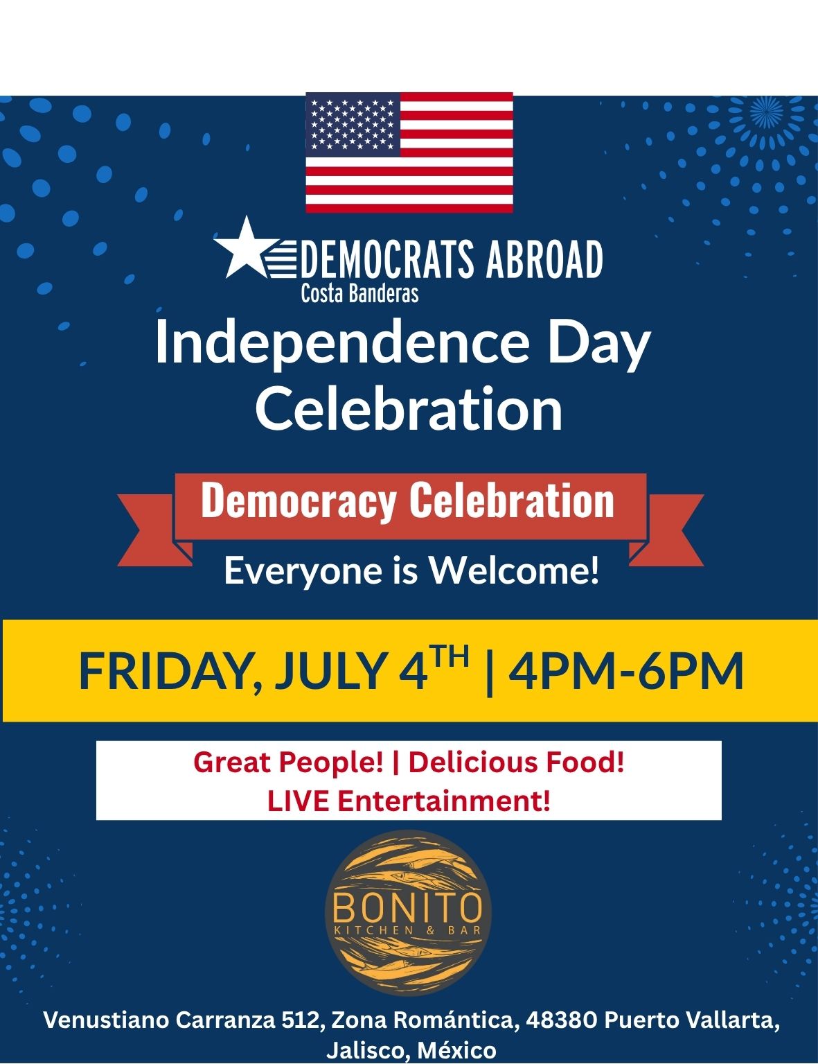 🍴Delicious appetizers will be provided courtesy of Democrats Abroad Costa Banderas.
