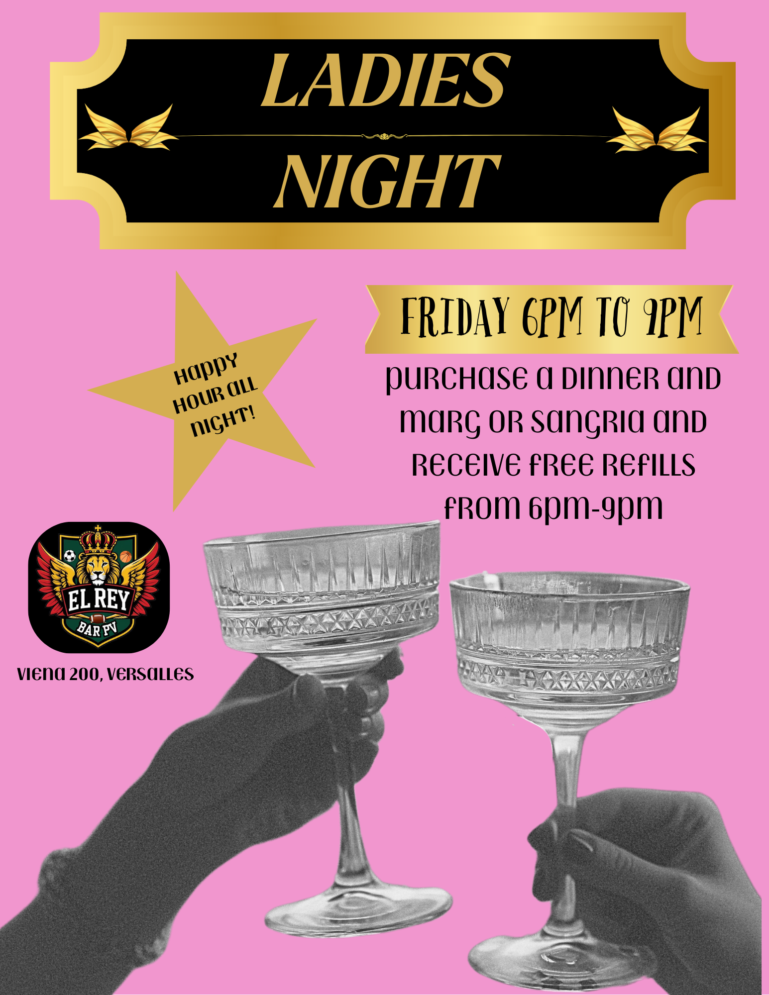 Bring your girls or your girlfriend over to El Rey Bar & Grill PV, Viena 200 in Versalles for our Ladies Night!