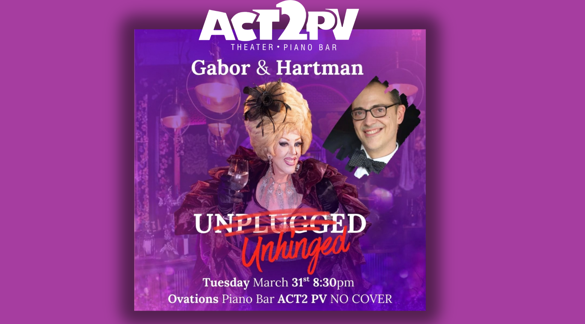 ONE NIGHT ONLY …Gouda Gabor & Mark Hartman take the stage for one last time this season! Join us on March 31 at 8:30 pm in the Ovations Piano Bar where they will be unplugged & unhinged for a grand evening of #dish & #ditties…showbiz stories plus a selection of their favorite songs you haven’t yet heard this season! NO COVER…but better get there early to snatch a table! Reserve your space by following the link below: