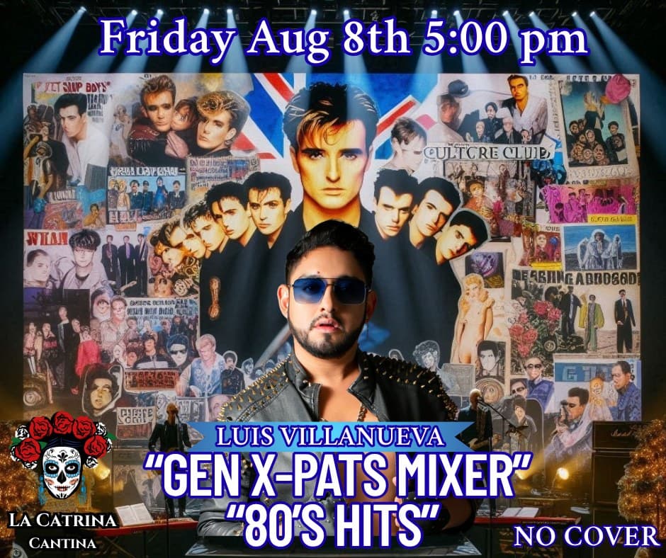 Come meet your fellow Gen X-Pats at our Gen X-Pat Mixer, La Catrina Cantina! Everyone welcome! Luis Villanueva will take you back in time with hits from the 80’s. No cover.