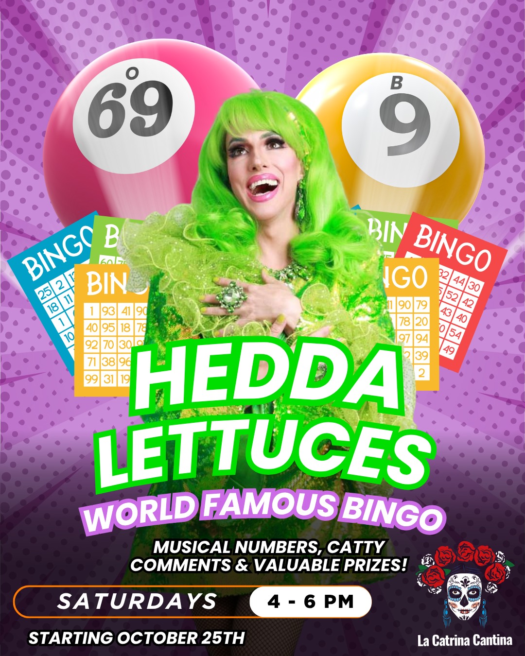 Hedda Lettuce’s World-Famous Bingo is BACK & Funnier Than Ever! Season begins Saturday October 25th from 4-6pm. Only at La Catrina Cantina in Puerto Vallarta.