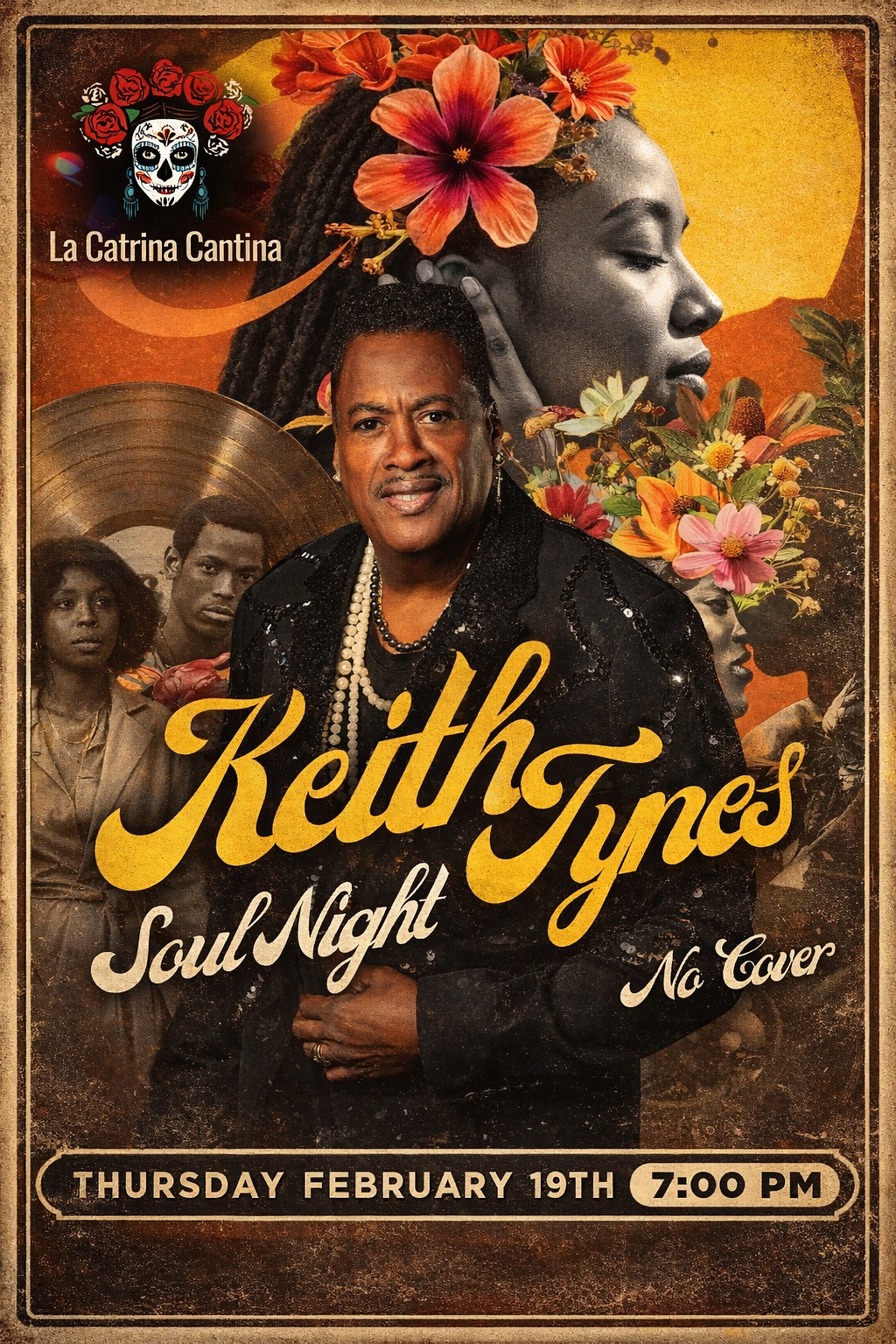 Keith Tynes takes the stage at La Catrina Cantina for a night of rhythm, elegance, and timeless emotion. A powerful tribute to the sounds of Motown, classic R&B, and the music that defined the 60’s and 70’s.