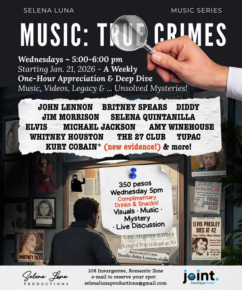 This one-hour weekly experience blends music appreciation, rare video footage, and cinematic storytelling with a gripping true-crime deep dive into the lives—and deaths—of the world’s most iconic singers. We begin each session honoring the artist through their music and cultural impact, then peel back the layers to examine the controversies, crimes, conspiracies, and systems that shaped their stories.