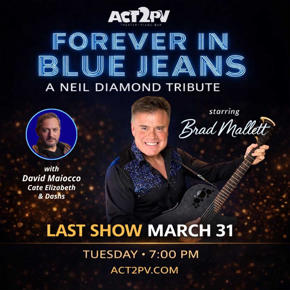 Enjoy an intimate evening celebrating the timeless music of Neil Diamond. Forever in Blue Jeans features Brad Mallett alongside a talented group of musicians, with David Maiocco on piano, Cate Elizabeth on vocals, and Dashs on guitar, bringing depth and warmth to these iconic songs.