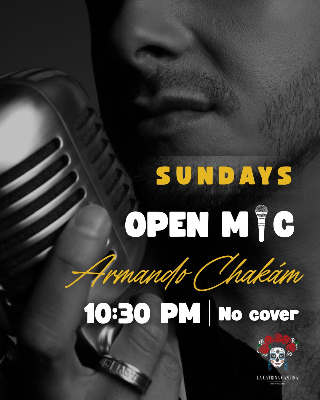 Armando Chakam is hosting Open Mic at La Catrina singing the favorite songs, Entertainers around town are encouraged to come promote their shows at La Catrina Cantina! No cover!