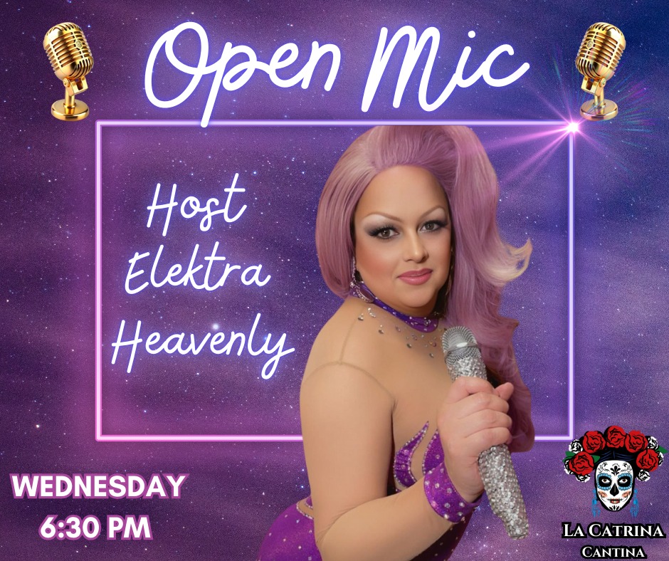 Open Mic, everyone welcome. Performing artists receive a free drink. Elektra Heavenly will entertain you with her soulful voice and charismatic charm. Come sing at the Open Mic…