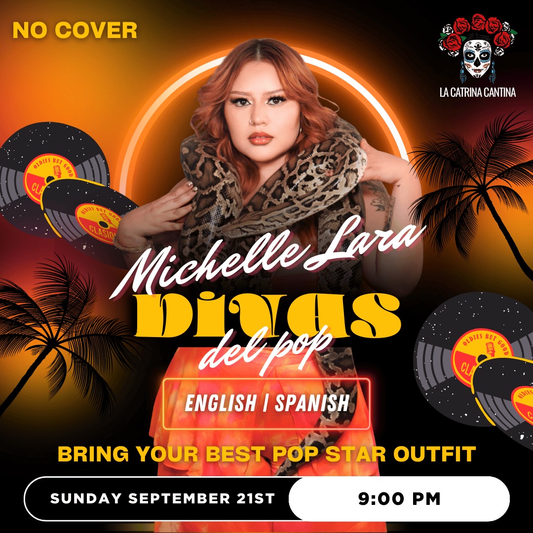 Michelle Lara, La Voz Catrina Winner’s Concert. Come celebrate our finalist at her Diva’s Concert, a musical showcase of Pop Divas in both English and Spanish. Bring your best Pop Star Outfit and join the party