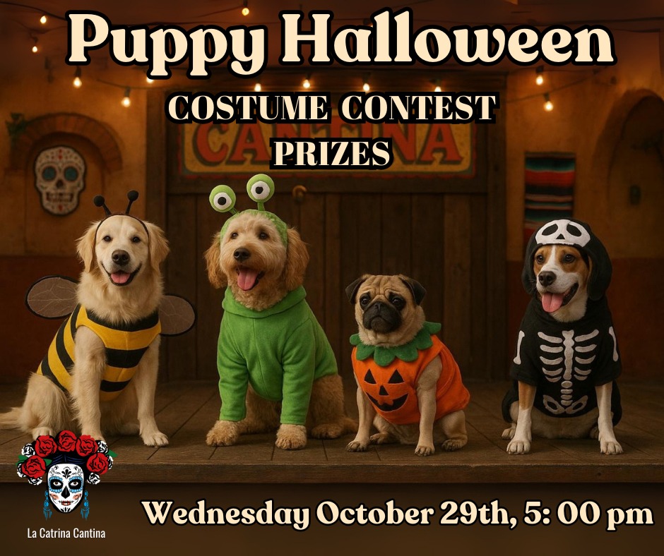 Puppy Halloween Costume Contest Puppy Halloween Costume ContestWednesday October 29th 5pmPrizes Tags: Featured, La Catrina Cantina Date Oct 29 2025 Event Ended Time 5:00 PM Labels FEATURED Location La Catrina Cantina La Catrina Cantina, Lázaro Cárdenas 315B, Emiliano Zapata, Puerto Vallarta Website https://lacatrinacantinapv.com/ Phone +52 322 291 8777