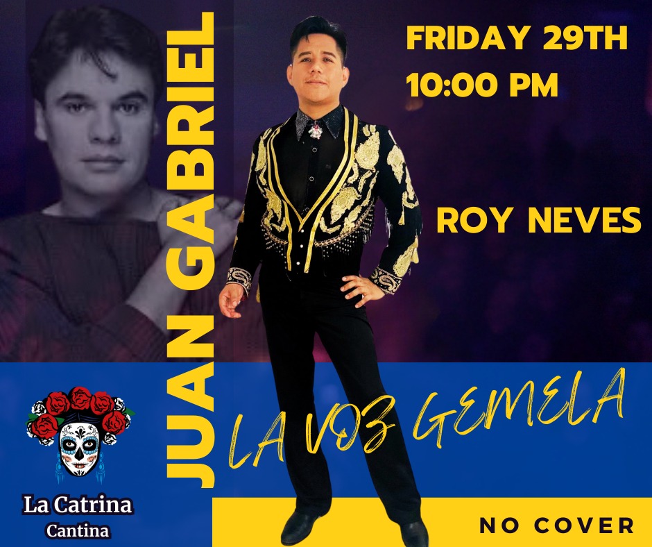 Roy, unmatched imitator of Juan Gabriel, presents his greatest hits in a night full of celebration. Get ready to sing and dance to the rhythm of the unforgettable songs from Querida, Hasta que te cone, Amor Eternal, Abrazame Very Strong and El Noa Noa. Don’t miss this unique opportunity to relive the magic of Divo de Juárez with the identical voice of Roy ¡Viva México! No cover
