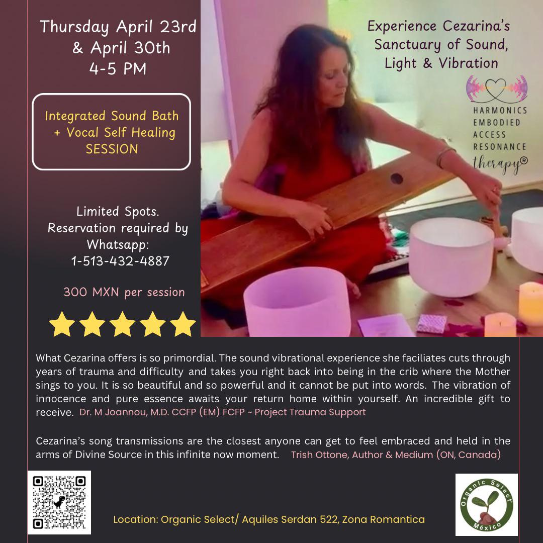 Cezarina will be toning the crystal bowls in the garden of Organic Select. Join us for an internal personal journey leaving you relaxed and grounded. Bring your mat or blanket. Pre-register spaces are limited to 10.