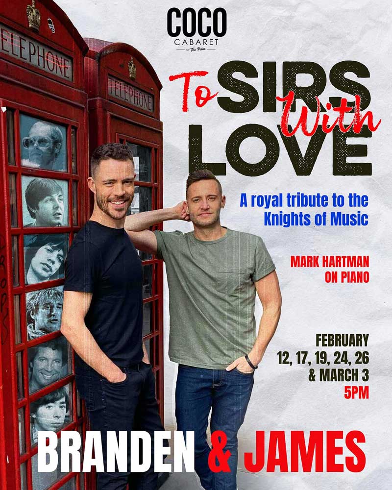 A Royal Tribute to the knights of music (and a few dames too) such as Paul McCartney, Elton John, Tom Jones, Shirley Bassey, Andrew Lloyd Webber, Robbie Williams, Julie Andrews, and many more! Puerto Vallarta favorites Branden & James are returning with a brand-new show to celebrate their 10th Anniversary season in Banderas Bay. Featuring Mark Hartman on piano.