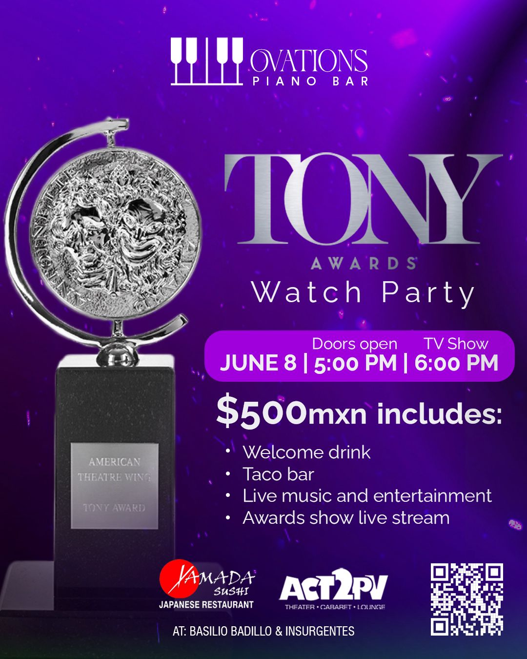 Join us in the Ovations Piano Bar for the 2nd Annual Tony Awards Celebration — a not-so-fancy, ridiculously fun, taco-fueled tribute to Broadway’s biggest night!