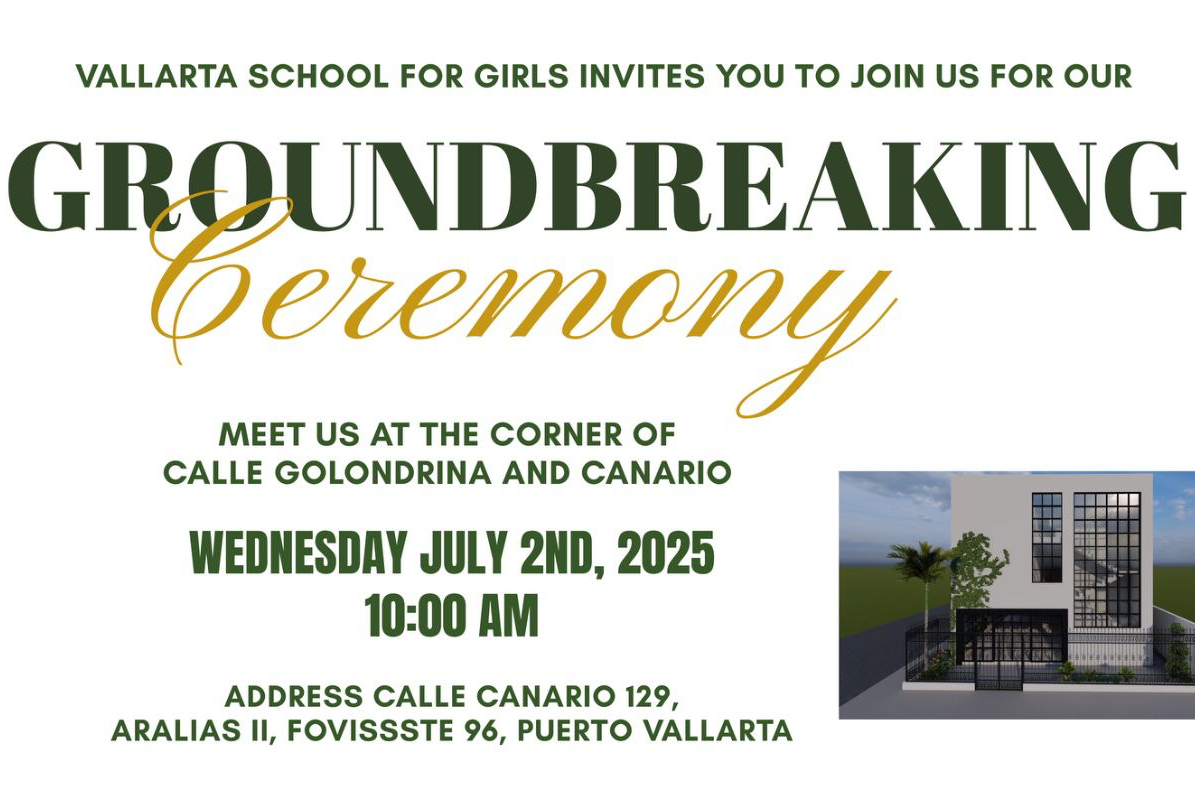 You’re invited to celebrate a major milestone with us! Join The Vallarta School for Girls for our Groundbreaking Ceremony on Wednesday, July 2nd at 10:00 AM. Be part of this exciting new chapter as we take the first step toward building a brighter future for local girls. We’ll gather at the corner of Calle Golondrina and Canario—come show your support and help us kick off this inspiring journey!