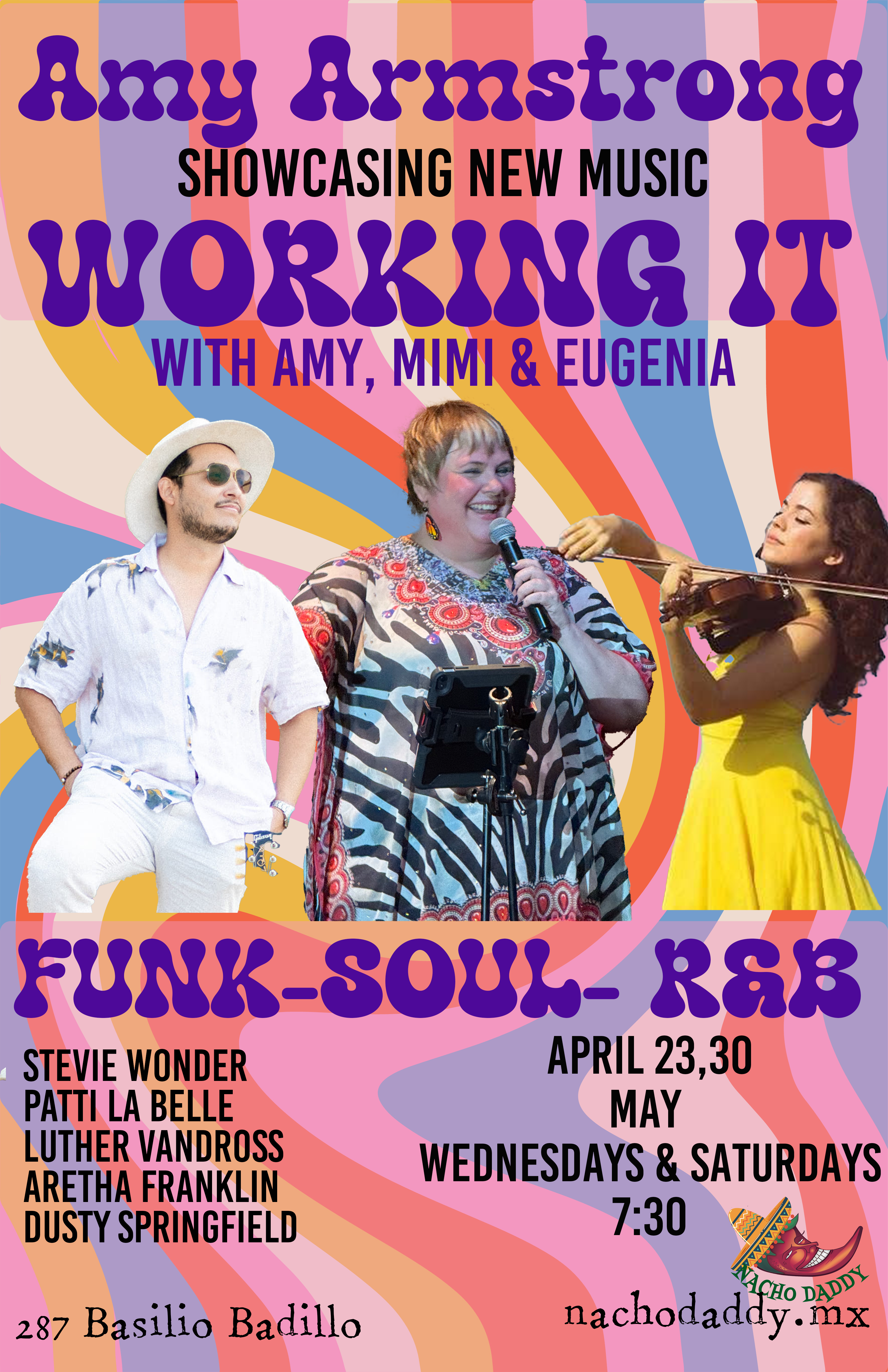 Working It with Amy Armstrong with Mimi (Al Ramirez) and Eugenia Prieto. Amy brings some Funk to Puerto Vallarta. Come and enjoy Amy’s new show.