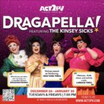 - Details: Puerto Vallarta’s longest-running drag troupe returns Tuesdays and Fridays at 7pm with Dragapella!—a hilarious, four-part harmony mix of pop, musicals, and bawdy satire at Act2PV.