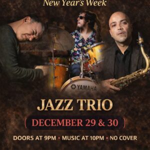 - Details: No cover live jazz from Fabbricatore, Davalos, and Mendoza fills The Social Club December 29–30, with doors at 9 PM and music at 10 PM.