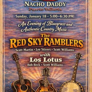 An evening of acoustic country and bluegrass, featuring Los Lotus and the Red Sky Ramblers with classic tunes, tight harmonies, and lively picking.