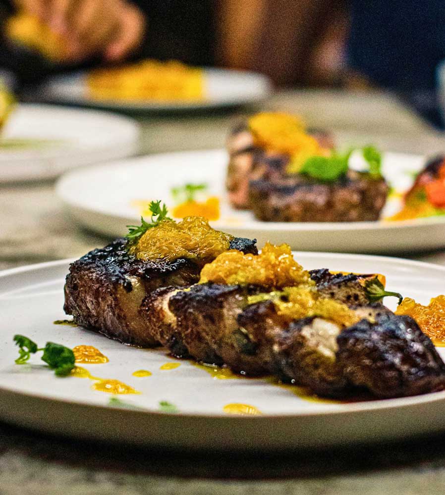 The menu changes periodically to reflect the seasons and the chef’s evolving inspirations, but several dishes have become customer favorites. Empanadas, grilled beef sweetbreads, “sarandeado” octopus, and the soft‑shell crab taco with kimchi are frequently praised as starters. Main courses such as the oversized ravioli filled with braised short ribs, the barbacoa lamb quesadilla, and the New York steak crusted with coffee and cacao—served with a habanero‑orange marmalade—offer rich, unexpected flavors that leave guests wanting more.
