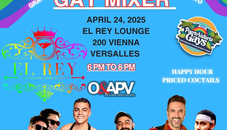 Free Event Join Out & About PV Magazine and the Facebook group Puerto Vallarta Gays Everything You Need or Want to Know for this fun mixer at El Rey Lounge. Meet new friends, make new business contacts, and have fun at the free mixers. O&APV staff will greet you and provide you with a name…