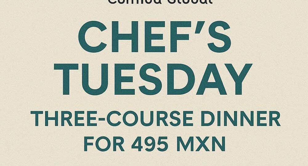 Every Tuesday at Gastronomiq Comida Global, located at Lisboa 169 in Versalles. Join us each Tuesday for a special three-course Chef’s Dinner that celebrates bold flavors and global inspiration. Begin with your choice of a vibrant Strawberry Burrata Salad with mixed greens and a touch of balsamic, or a comforting bowl of Creamy Corn Chowder…