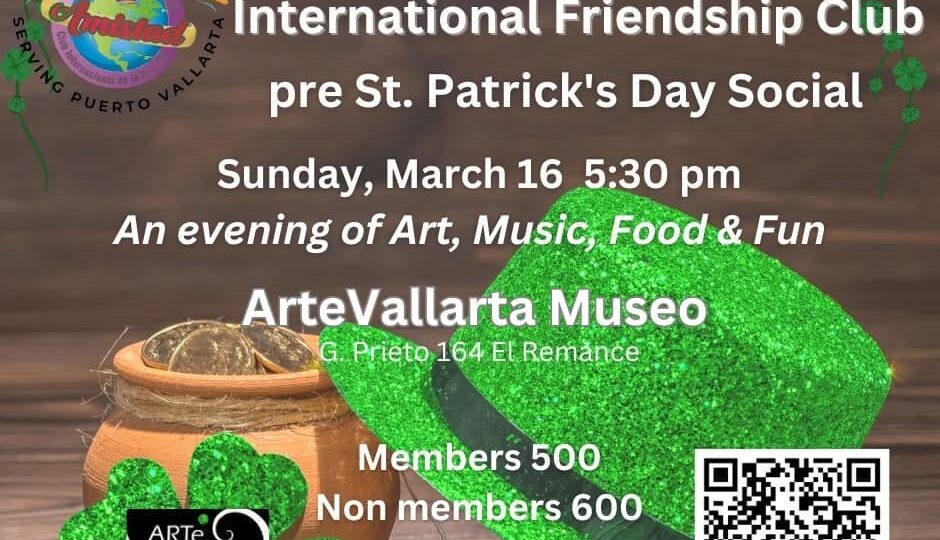 Celebrate St. Patrick’s day with corned beef sliders (and much more) and delicious beverages in the gorgeous courtyard of ArteVallarta Museo, with a live band. Browse the museum and its gift shop. Mingle. The International Friendship Club welcomes you to this evening of food, art, music and fun on Tuesday, April 16, at 5:30 PM.…