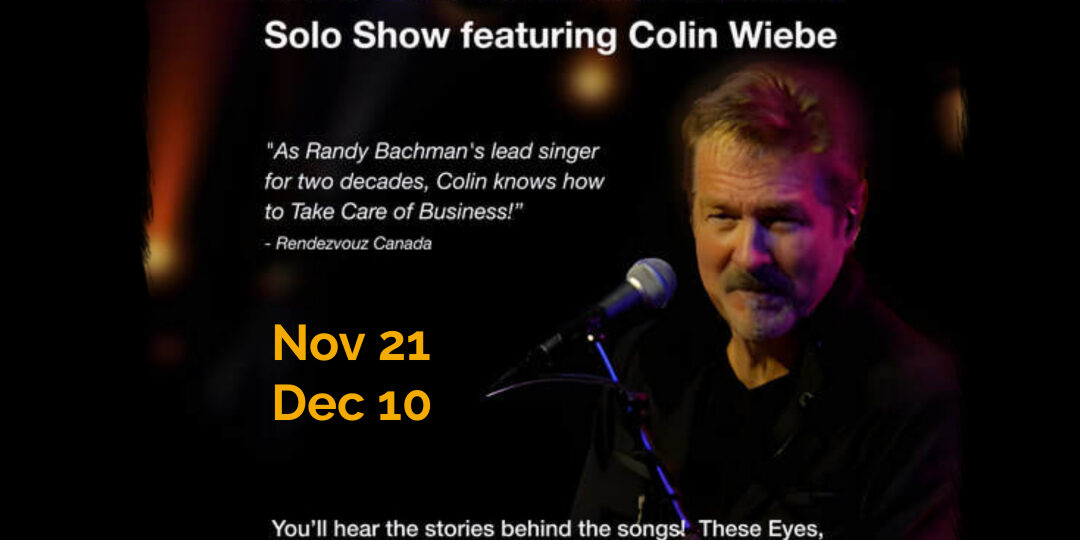 Calling all Guess Who fans! Colin Wiebe celebrates the music of The Guess Who and Burton Cummings!! Colin toured with rock legend Randy Bachman (The Guess Who and BTO) for two decades singing hits like “No Sugar Tonight”, “These Eyes”, “No Time”, “Share The Land”, “ClapFor The Wolfman”, “Undun” and “American Woman”. Colin’s solo show…