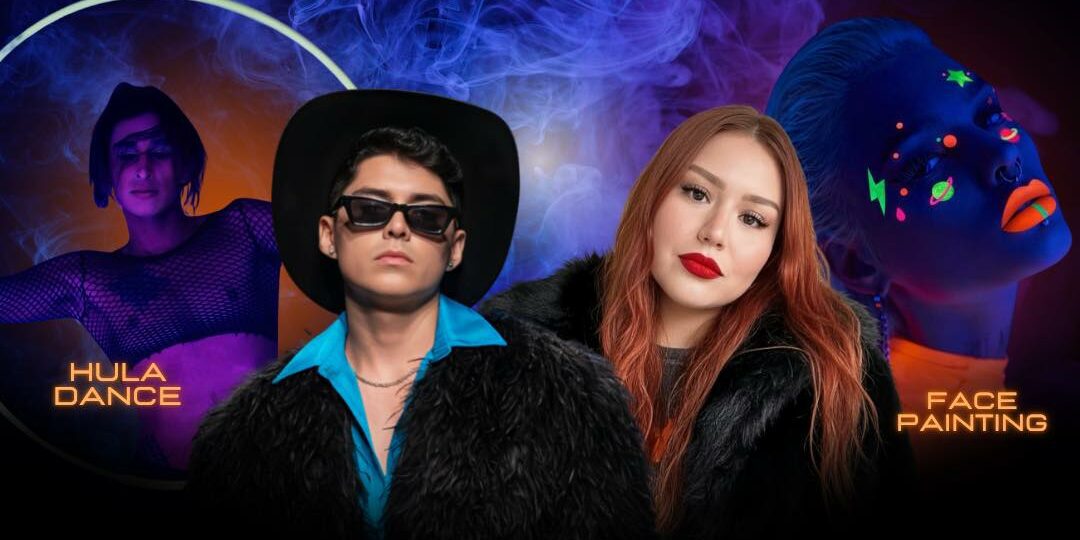La Catrina Cantina lights up with an explosive show where rock and rave collide with the best pop covers, performed live by Michelle Lara and Mitchell Rivadeneyra (Riva.Rave). But that’s not all: A special performance by Adán Carano – Hula Dance. Neon face painting for the audience to glow with the vibe.