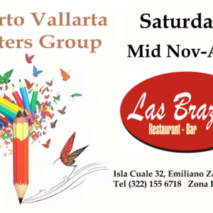 - Details: The Puerto Vallarta Writers Group meets every Saturday morning at Las Brazzas on the Isla Cuale from November to April.